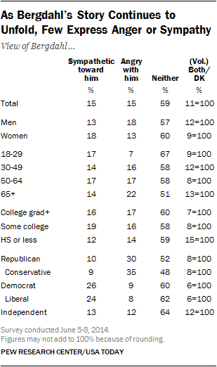 Bergdahl is supposed to be someone Real Americans want shot at dawn, but even conservative Republicans can't muster a plurality to declare him evil, much less a majority: